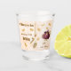 Elegante Orange Marmor-Textur mit einer goldenen und einzigartigen Ballon-Nummer 70. Geburtstag Dekoration an einer goldenen Kette mit einem orangefarbenen Herzjuwel. Die Dekoration des Schnapsglases umfasst auch goldene und orangefarbene Schmetterlinge, die sich um die englischen Rose drehen.