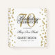 Eine elegante 70th Birthday Party Gästebuchvorlage mit Gold Glitzer Confetti auf White Design und leicht anzupassen Text.