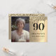 Gold, black, simple, photo, elegant, feminine, adult, typography, sparkle, glam, watercolor 90th Birthday party, ninetieth invitations. Personalize it with your details.