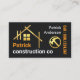 Ein dunkelgraues Cover mit goldenem A-Frame Gebäude-Design. Es enthält zwei Untertitel, die man ändern kann. Oben liegt Ihr Prestigename, ein goldenes Hammer-Logo, das Sie mit den Kontaktdaten, die senkrecht auf der rechten Seite gehalten sind, verwenden können. Oben auf der Rückseite befindet sich das goldene Logo, gefolgt von Ihrem angesehenen Namen, den Kontaktdaten und einer Slogan-Option, um Ihr Unternehmen zu veröffentlichen. Eine tolle Karte für Gebäude-Auftragnehmer. #handyman #construction #homeconstruction #homerepair #building #homebuilder #remodeling #handymantools #interiordesign #Gebäude