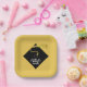 Creative Graduation Party oder Event Teller für die Klasse der '25 Klassen mit lustigen Linien und klassischen schwarzen Graduation Cap auf goldenem Hintergrund.