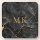 Gold Akzente Schwarzes Marmor Monogram Initialen Getränkeuntersetzer