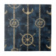 Luxurious nautical pattern ceramic tile with golden anchors, helms, and ropes set against a deep distressed blue background. The shimmering gold details and vintage texture create an elegant maritime feel. Ideal for ocean lovers, sailors, coastal fans, and summer or beach-themed gifting.