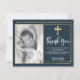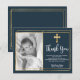 Gold and Navy Blue Baptism Photo Thank You Cards Dankeskarte