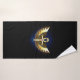 Golden ägyptischer Knöchel mit gemusterten, glänzenden Flügeln auf schwarzem Hintergrund. Magisches Symbol.