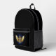 Golden ägyptischer Knöchel mit gemusterten, glänzenden Flügeln auf schwarzem Hintergrund. Magisches Symbol.