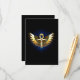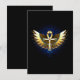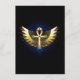 Golden ägyptischer Knöchel mit gemusterten, glänzenden Flügeln auf schwarzem Hintergrund. Magisches Symbol.