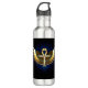 Golden ägyptischer Knöchel mit gemusterten, glänzenden Flügeln auf schwarzem Hintergrund. Magisches Symbol.