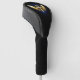 Golden ägyptischer Knöchel mit gemusterten, glänzenden Flügeln auf schwarzem Hintergrund. Magisches Symbol.