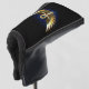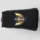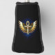Golden ägyptischer Knöchel mit gemusterten, glänzenden Flügeln auf schwarzem Hintergrund. Magisches Symbol.