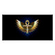 Golden ägyptischer Knöchel mit gemusterten, glänzenden Flügeln auf schwarzem Hintergrund. Magisches Symbol.