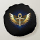 Golden ägyptischer Knöchel mit gemusterten, glänzenden Flügeln auf schwarzem Hintergrund. Magisches Symbol.
