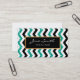 Hübscher und weiblicher, aquamariner Glitter, Zickzack Schwarzweiss-Muster mit einem Gold und schwarzer Aufkleber, doppelseitige Geschäftskarte.