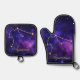 Gold Aquarius-Sternbild auf der Dunkelgalaxie | Ofenhandschuh & Topflappen-Set