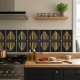 Add a touch of vintage luxury to your home with this stunning ceramic tile. It showcases a bold Art Deco skyscraper silhouette rendered in gleaming gold against a deep, matte black base. The repeating geometric pattern reminiscent of city skylines captures the iconic architectural style of the Art Deco era, bringing a sense of grandeur and sophistication. This tile is ideal for creating a feature wall, a backsplash, or as a decorative accent that complements a range of interior design styles, offering a unique blend of classic artistry and modern appeal.