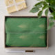 Atemberaubendes vergoldetes Art Deco geometrisches Design-Set vor einer dynamischen grünen Kulisse, ideal, um eine Touch Luxus zu Ihrem Geschenk verpacken in dieser Feriensaison.
