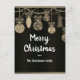 Verschenken Sie in dieser Festtagszeit einen Hauch von modernem Luxus mit unserer Gold auf schwarzer Eleganz Weihnachts-Postkarte. Diese sehr luxuriöse schwarze und goldene Weihnachtskarte zeigt eine auffällige goldene Kaskade aus Christbaumkugeln und Perlen, die von oben herabhängen, mit einer persönlichen Begrüßung darunter. Auf der Rückseite der Postkarte ist Platz für eine persönliche, handschriftliche Nachricht, wenn gewünscht.