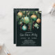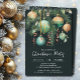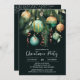 Elegant Christmas holiday party invitations feature pine branches, green and gold Christmas ball ornaments and ribbons on a dark green background with your details in chic lettering, perfect for your festive holiday gathering. MATCHING items in our collection.