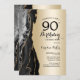 Schwarz und Gold agate 90. Geburtstagsfeier Einladung. Elegantes modernes Design mit Gesteinsgeode-Hintergrund aus Stein, Imitate Glitzer Gold und Typografie Drehbuch Schriftart. Die trendige Einladungskarte eignet sich perfekt für eine stilvolle Damenfeier. Gedruckte Zazzle Einladungen oder Sofortdownload digitalen druckbaren Vorlage.