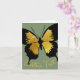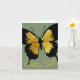 Blickfang Schmetterling im Flugdesign mit goldfarbenem, individuellem Text für einen Namen oder eine Nachricht. Das Design zeigt eine Abbildung eines Schmetterlings mit kontrastierenden glänzenden gelben und schwarzen Streifen. Die Flügel sind ausgestreckt, auch in den gleichen Farben Schwarz und Gold. Der benutzerdefinierte Text ist in einem kalligraphischen Stil, kurvt um den Schmetterling in einem hellgelben Gold. Dieses schlichte Schmetterlingsdesign ist Set vor einem schlauen grünen Hintergrund.
