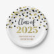 Individuell anpassbare Graduierungsparty-Klasse von 2025 Teller in glamourösem Gold und schwarz Konfetti-Muster und eleganten handgeschriebenen Stil Text.