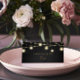 Modernes Design mit leuchtenden Lichterketten über Kalkboard-Hintergrund. Party decror Food Label Zelt Tisch Platzkarten Tischnummer Karte Zelt Form. Diese Karten sind doppelseitig und kommen flach an. Man muss sie abschneiden und falten. Teil einer Sammlung. Matching-Elemente verfügbar.