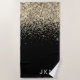 Gold Black Glitzer Girly Monogram Initials Strandtuch
