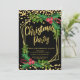 Elegantes Weihnachts-Party / Hochzeit / Abendessen Party Einladung Vorlage mit Watercolor Holly, Gold Rahmen, Glitzer & Gold Typ. Beeindrucken Sie Ihre Freunde mit diesem raffinierten und eleganten Einladungs-Design. Vollständig anpassbar!