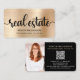 Gold Black Real Anwesen Agent Foto QR Code Broker Visitenkarte