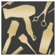 Vergnügen Sie sich mit goldfarbenem Schwarz-gemustert-Stoff mit den Silhouette-Ausschnitt-Formen von verschiedenen Werkzeugen des Handels, Stylist-Tools und Geräte wie Haartrockner, Schere, Kamm, Bürste, Applikationsbürste und Spritzflasche. Fügen Sie mit diesem lustigen Friseur-Design Ihrem täglichen kleinen Geschäftsleben Flair hinzu, um Ihre Salongegenstände wie Kapseln, Masken oder andere individuelle Gegenstände zu kreieren. Sie können sogar die Hintergrundfarbe ändern, indem Sie "anpassen" und die "gedruckte Hintergrundfarbe" ändern.