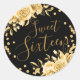 Gold Black Sweet 16 Birthday Floral Glitzer Runder Aufkleber