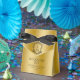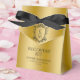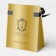 Ideal verpackt für eine Erholung-Kit nach einer lustigen Feier Ihres besonderen Tages. Dieses Hochzeitsdesign besticht durch ein Vintages Wappen mit schwarzem Blumenmuster und individuellen Hochzeitsinitialen auf Goldbasis.