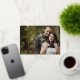 Eine wunderschöne Hochzeit in der Landschaft speichern Sie das Datum Ankündigung mit einem goldenen Folie Schild Wappen mit Blätter, mit Ihrem Monogramm und Hochzeitstag auf dem verlassen überlegen Ihrem bevorzugten horizontalen Foto.