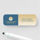 Name des Unternehmens Mitarbeiter Tag mit sandigem goldenen Grafik mit blauer Farbe als Hintergrund. Die Vorlage erlaubt es Ihnen, Ihr eigenes Firmenlogo, Tagline, den Namen der Mitarbeiter und den Titel Ihres Jobs einzufügen. Das minimalistische Design ist für alle Arten von Unternehmen geeignet.