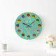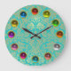 GOLD BLAUE AQUAMARIN DAMASK UND FARBHAFTE 3D GEM S GROßE WANDUHR