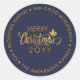 Gold & Blue Frohe Weihnachten Custom Rücksendeadre Runder Aufkleber