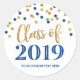 Gold Blue Glitzer Confetti Abschluss 2019 Runder Aufkleber