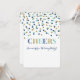Feierliche Weihnachtsfeier Einladungen in glamourösem Gold, Marineblau und helltürkisblaue Glitzer Effekt Konfetti Muster. Bitte beachten Sie, dass Glitzer nur fotografischer Effekt ist.