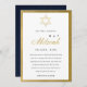 GOLD BLUE INDIGO WATERCOLOR DOTS BAT BAR MITZVAH DANKESKARTE