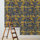 Gold Blue Mosiac Tiles Pattern Peel Stick Tapete
