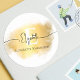 Gold Brush Stroke White Monogram Black Script Name Runder Aufkleber