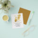 Elegantes goldenes Budget Taufe Einladung. Unter Ereignisdetails können Sie diese Art anpassen > Diese Vorlage personalisieren > Klicken Sie für weitere Anpassungen - um die Eingabeaufforderung umfassend zu bearbeiten, anzupassen, den Schriftart und seine Farbe sowie die Größe des Schriftartes zu ändern.