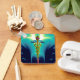 GOLD CADUCEUS MEDIZINISCHE SYMBOL Aqua Blue Türkis Schlüsselanhänger