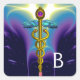 GOLD CADUCEUS MONOGRAM, Lila blau Quadratischer Aufkleber