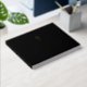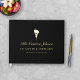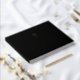 Elegantes schwarzes Begräbnisguestbook mit Goldfolientext und einer Goldfolie, die auf dem Cover eine Lilie aufklebt. Der Wirbeltext ist auch in Goldfolie gedruckt.