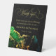 Schöne Schmucktöne schwarzer Onyx, smaragdgrüne und goldene Bronze-Highlights. Dunkel, launisch, originell und einzigartig. Gold Kalligraphie Grün Schwarz Agate Pedestal Zeichen. Die Farben schwirren und mischen sich und machen eine originelle Alkoholfarbe abstrakt von der internationalen Künstlerin Pauline Benjes. Dieses Produkt passt zu unserer Emerald Green Bronze Hochzeitssuite. Sehen Sie sich unsere Sammlungen für schönere Kunstwerke an.