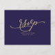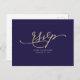 Gold Calligraphy Navy Blue Wedding RSVP Postkarte