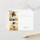 Dieser hübsche Abschluss danke Ihnen postcard verfügt über zwei Fotos und Platz, um eine persönliche Nachricht an Empfänger zu schreiben. Auf der links können Sie zwei quadratische Fotos des neuen Absolventen hinzufügen. Auf der rechten Seite ist "Danke" in moderner Goldkalligraphie an der Spitze geschrieben. Unten sehen Sie einen leeren Bereich, um benutzerdefinierte handgeschriebene Notizen an Empfänger zu schreiben. Fügen Sie unten den Namen des Absolventen und das Jahr des Abschlusses hinzu. Auf der Rückseite ist Platz, um zusätzlichen Text hinzuzufügen, wenn gewünscht.