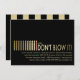 Gold Candles Überraschung Geburtstagsparty Einladung von Eugene Designs. Modernes, stilvolles Einladungs-Template mit Geburtstagskandeln in digitalen Imitaten, goldene Folie auf elegantem Jet-schwarzen Hintergrund. Eine rot-weiße Kerze im Single erscheint kurz vor dem Wort "schhh... Blasen Sie es nicht!" Einfache, minimalistische Textfelder, die einfach zu anpassen sind. Auf der anderen Seite sind die Geburtstagskandeln mit vertikalen digitalen Imitaten mit goldenen Folienstreifen aufgepeppt.