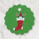 Dieses hängende Geschenkschild ist weiß mit zwei vergoldeten Bonbons aus Goldfolie gestreift, und ein froher Weihnachtstext, den Sie mit den Vorlagen anpassen können. Der Rücken ist grün mit einem niedlichen Gnom in einem roten Strumpf mit roten und weißen Bonbons und heiligen Blätter.